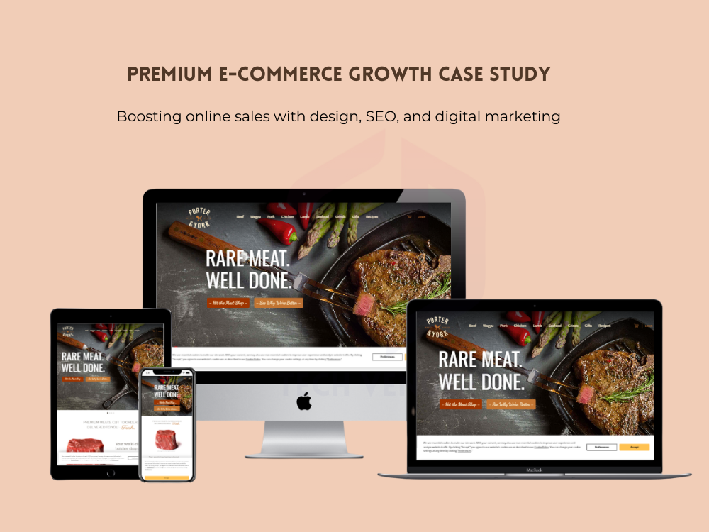 Porter & York faced issues with an outdated e-commerce setup, poor mobile user experience, and limited visibility in search engines. Slow site performance and lack of effective marketing strategies were holding back online growth.